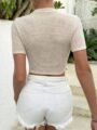 T-shirt Court Slim à Col Rond et Ourlet à Franges : L’incontournable de la Saison Printemps-Été